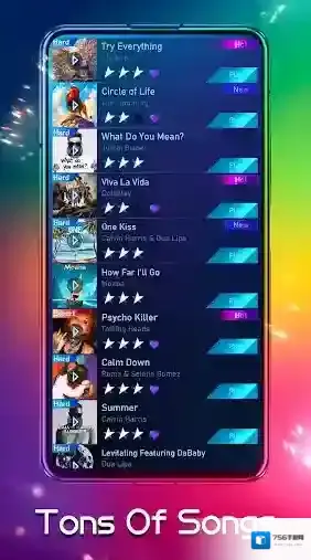 游戏将音乐和节奏完美的融合,挑选来自全球的各种热门流行歌曲进行挑战,根据音乐的节奏不同,难度也会有所不同,挑战起来趣味更足!除此外,游戏内还会跟随歌曲的进行而慢慢提速,在高潮部分将会变得最难,让挑战更加的有意思!