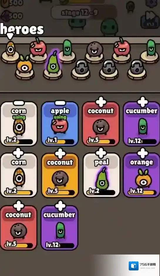 1、不同的水果蔬菜英雄等你去召唤来战斗,丰富的英雄角色可以自由选择来上阵战斗。